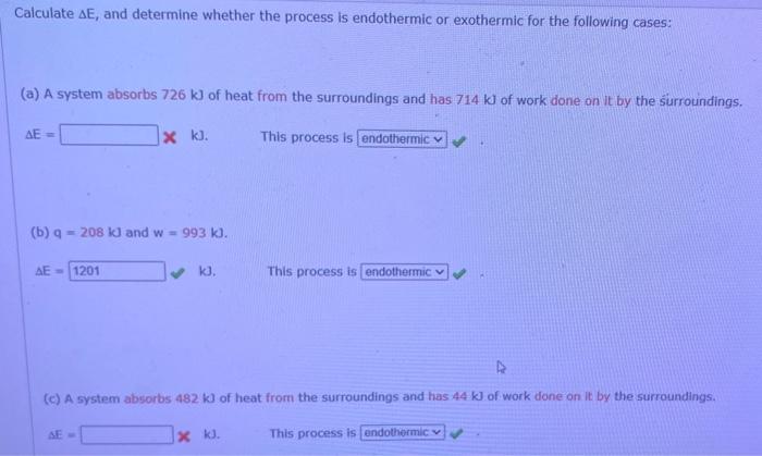 Solved Calculate De For Each Of The Following A Q 47 Kj W 88 Kj B Q 82 Kj W 47 Kj C Q 47 Kj W 0 D In Which Of These Cases Do The Surroundings Do Work